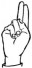 На ћирилици написано ВОЈИМИР ШИРОЛА састоји се из 13 слова [?]. Исписано ћириличном једноручном азбуком за глувонеме: